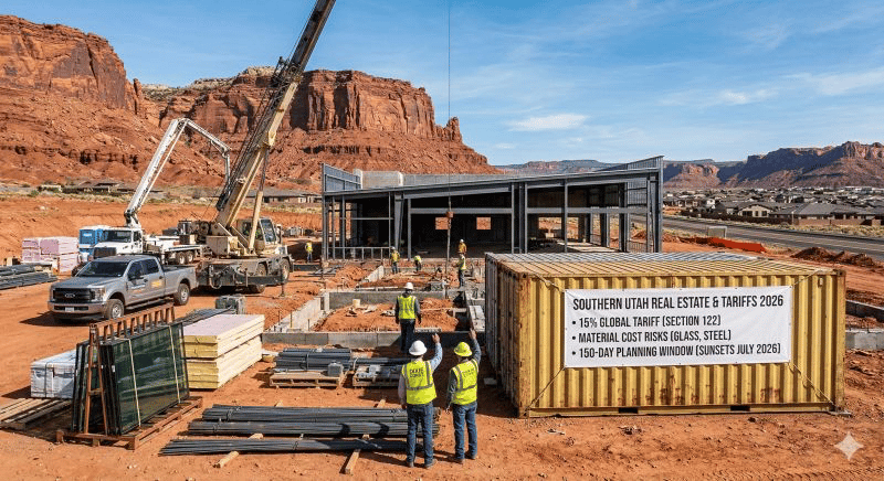 - The 150-Day Squeeze: The new 15% tariff has a built-in "sunset" for July 2026. For Southern Utah builders, this procurement process is challenging. Do you buy your specialized glass and steel now, or gamble that the rate drops this summer?